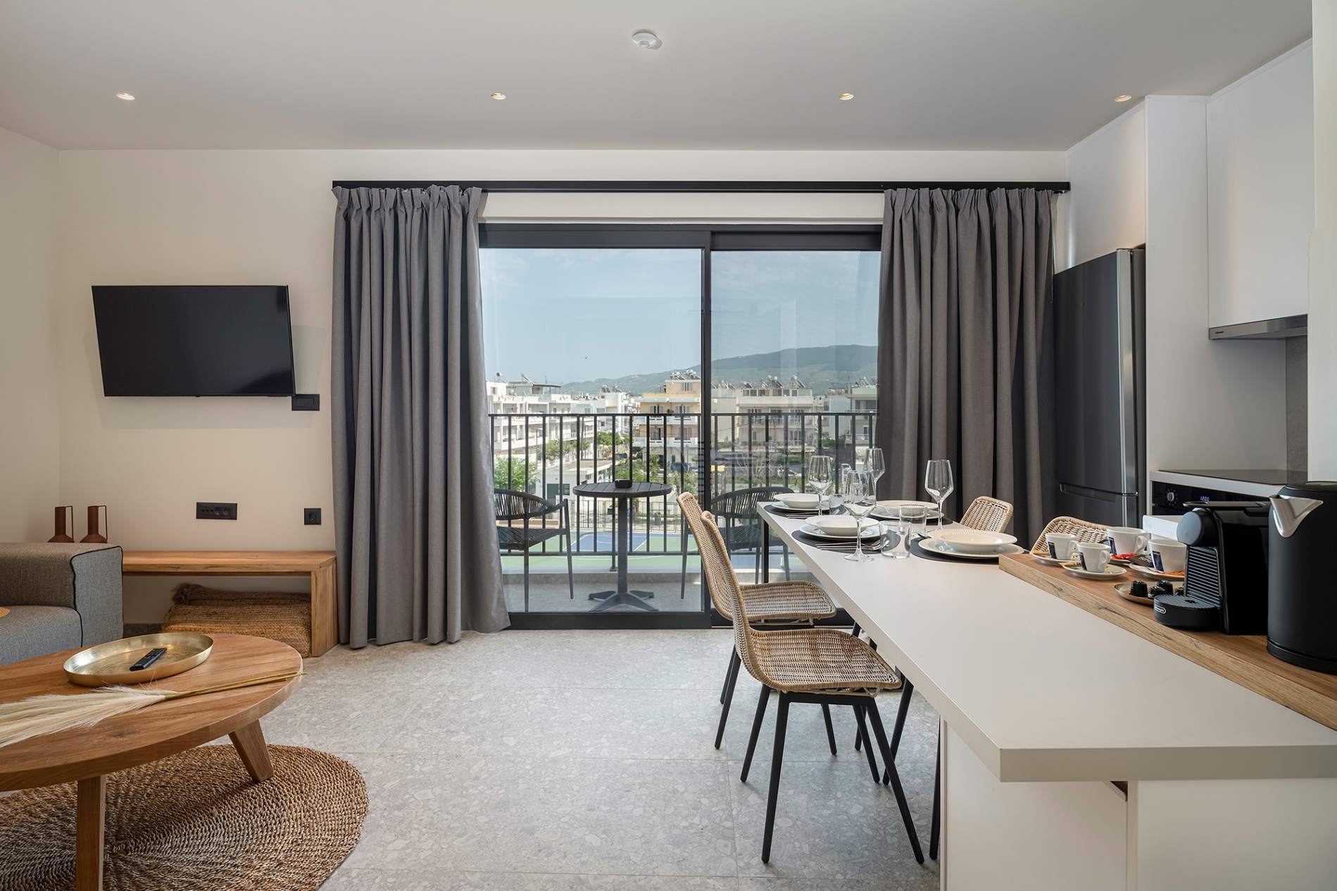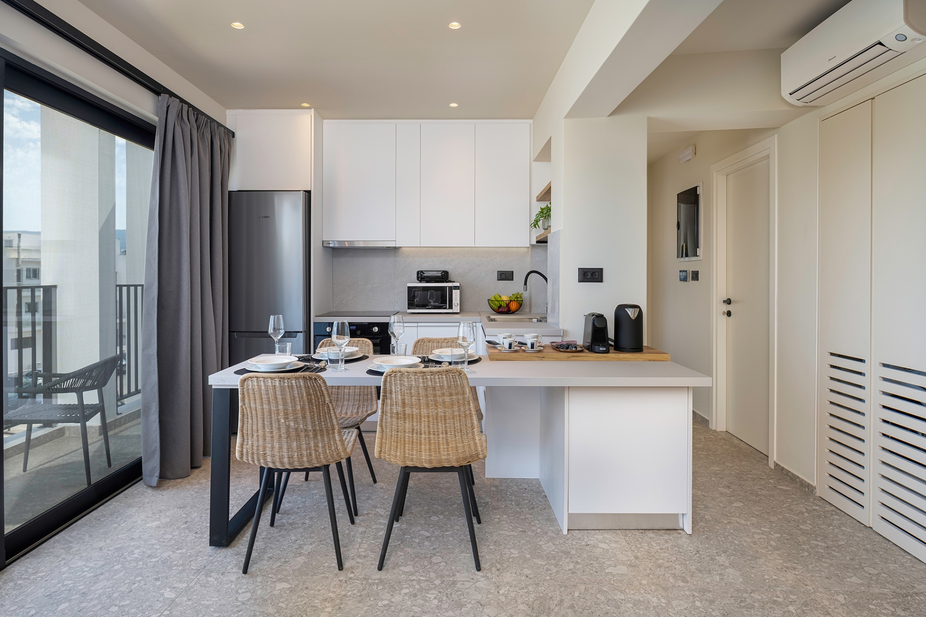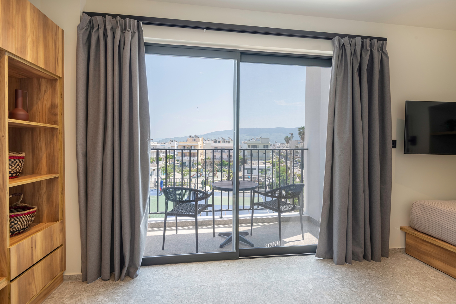 This Apartment offers 60 m² of modern and comfortable living space. It includes two bedrooms, a bathroom, a cozy living area and a fully equipped kitchen. A private balcony overlooking the town provides a peaceful retreat in the center of Kos.